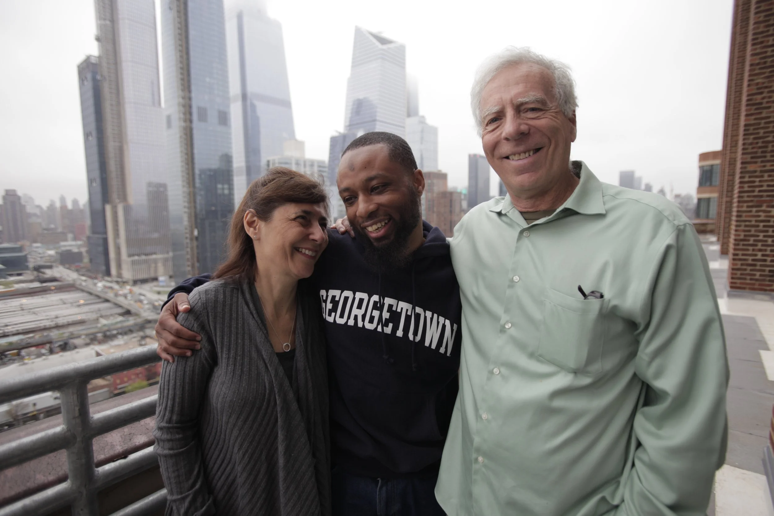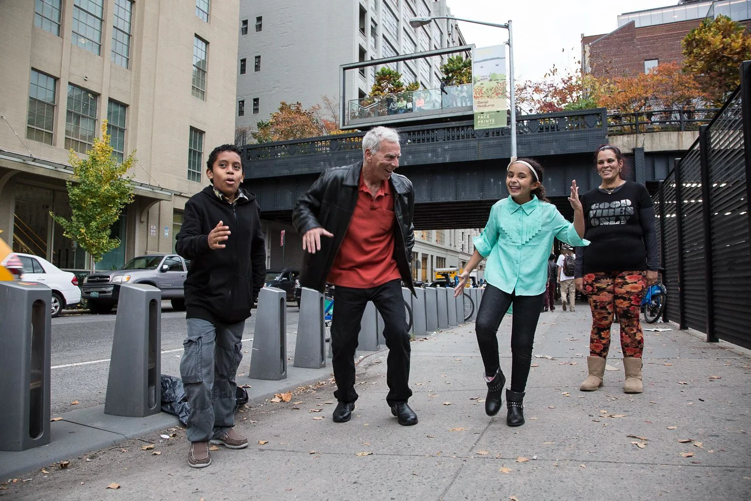 Joel, Marc Levin, Rosa De Santiago, and Rosa Sr. in Chelsea, NY filming Class Divide.